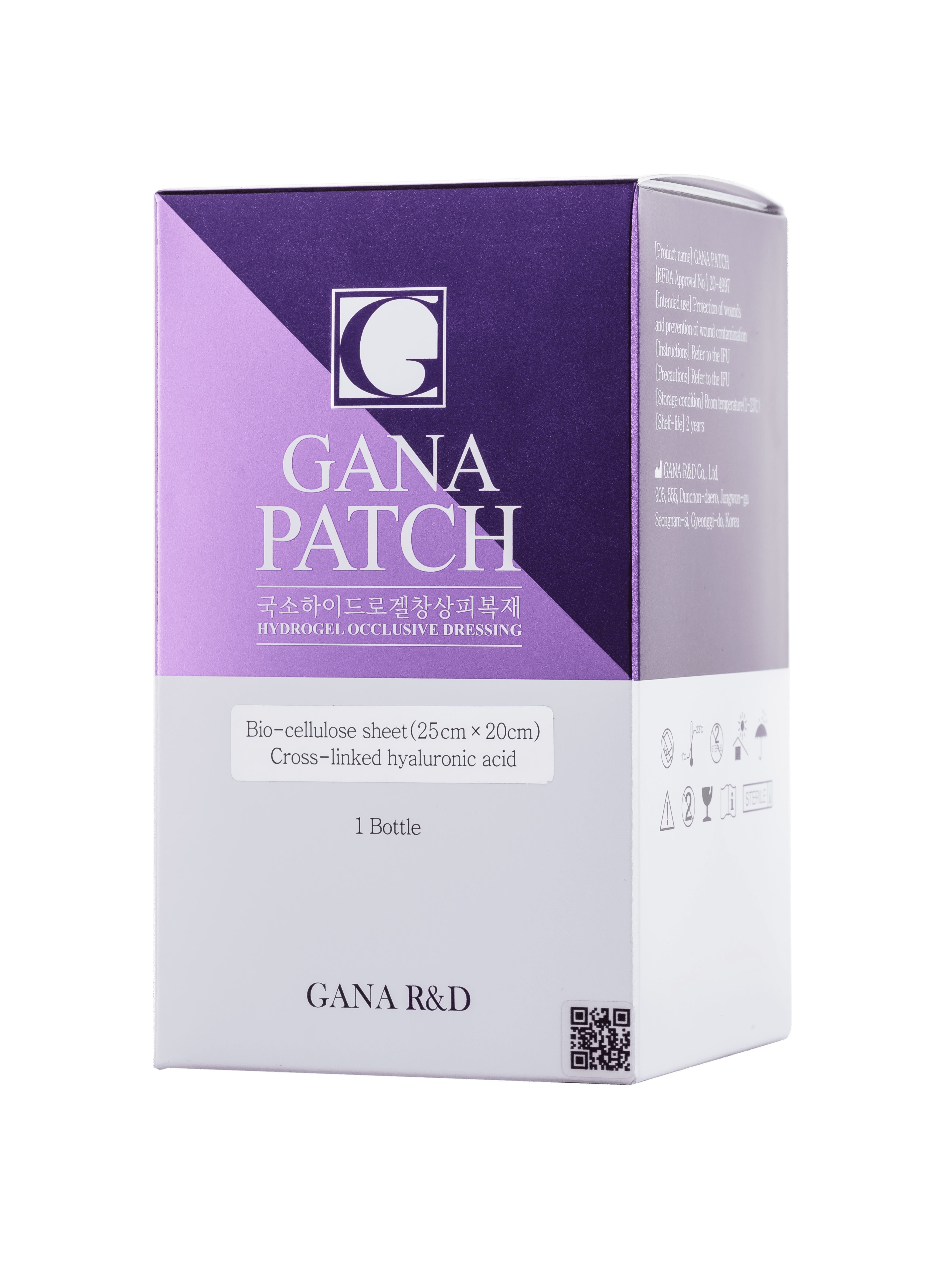 GANA PATCH — уникальная разработка южнокорейского концерна GANAR&D. Представляет собой стерильную повязку на основе биоцеллюлозы. Благодаря структуре самой биоцеллюлозной повязки и биологически активному компоненту гиалуроната натрия в составе, GANA PATCH высоко эффективен при таких поражениях кожных покровов как ожоги, пролежни, последствий механических травм и при других дефектах кожи. Медицинская повязка абсолютно гипоаллергенна, не вызывает побочных эффектов или воспалительных реакций.