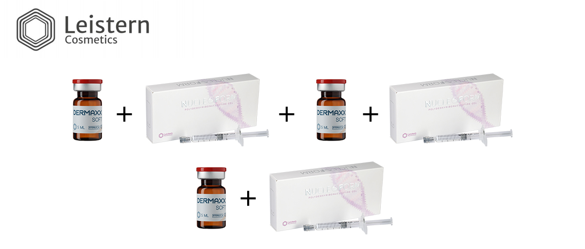 Курс включает 4-8 процедур до достижения видимого результата. После применения DerMaxx Soft интервал до следующей процедуры 7 – 10 дней, после применения NucleoForm 10 – 14 дней.
