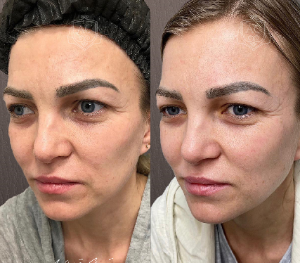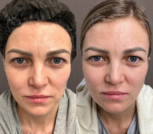 Начальный этап коррекции с усталым морфотипом старения, лечение морщин (для PNV+ возможна техника «бланч»